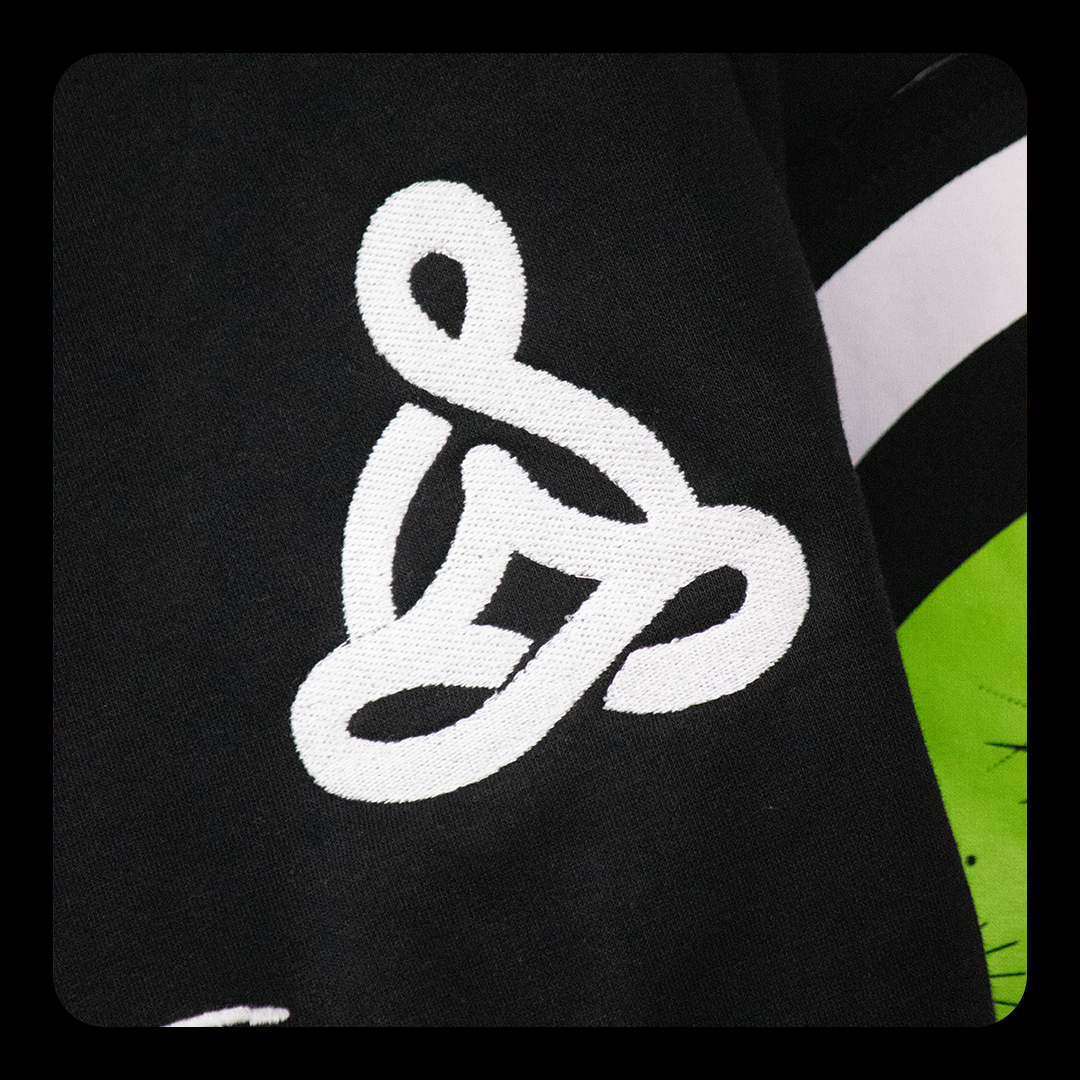 On the right arm, an elegantly embroidered meditating figure adds a touch of minimalism and quality craftsmanship. The fine embroidery reflects the care and precision that go into the design, making it not only visually appealing but also a symbol of personal alignment and focus.